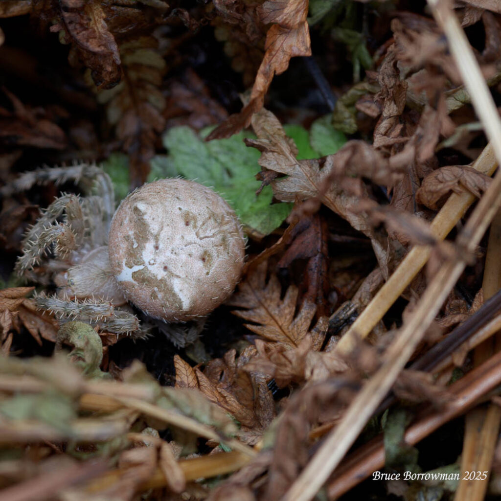 The spider has moved over to a corner under the deck and looks like it has made a home for the winter. There is no shortage of silk around it and the egg sack behind the main body.